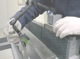 礦物鑄件又稱“人造大理石”“樹脂混凝土”,是用天然石碎料/鵝卵石、黃砂等為骨料,改性環(huán)氧樹脂等為膠凝材料,加入部分填料和外加劑經(jīng)過混合攪拌、振動密實而形成的一種新型高分子復(fù)合材料。其具有的復(fù)雜外型的成型能力和整合能力,高精度,良好的吸震性、熱穩(wěn)定性及耐腐蝕性等優(yōu)勢。